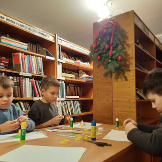 Gruodžio 12 dieną mažiausieji Kibyšių bibliotekos lankytojai mokėsi gaminti popierines girliandas, kuriomis vėliau papuoš savo aplinką, kad Kalėdų laukimas taptų malonesnis, džiaugsmingesnis, jaukesnis, spalvingesnis. Juk namų puošyba meniniais darbeliais iš popieriaus siekia senas ir gilias tradicijas.