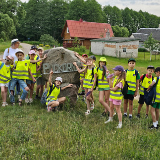 O birželio 5 d. su 3a klasės mokiniais ir mokytoja Aušrele Kauneckiene susitikome Varėnos traukinių stotyje. Dvidešimties minučių kelionė neprailgo. Kiek paėję nuo stoties užsukome pasižvalgyti į atnaujintą Naujųjų Valkininkų biblioteką ir keliavome link Vaitakarčmio. Eidami žvyrkeliu sutikom vos kelis vietinius gyventojus, bet iki valios galėjome gėrėtis paukščių simfonijomis ir tobula gamtos žaluma, tiesa, pakeliui radom pora negyvų angių ir varlių, kas kai kuriuos klasės berniukus itin sudomino. Netoli Pūčkornių, pamiškėje suradome ir raudonikį, ir pirmųjų žemuogių paragavome. Žygeiviai buvo drausmingi ir balsingi: dalį kelio žingsniavome su dainomis, repertuare skambėjo Lietuvos himnas, „Boružėlė septyntaškė“, „Atostogauk“ ir kitos mažiesiems žygeiviams patinkančios dainos. Vis sustodami pailsėti, užkąsti ar atsigaivinti palengva pasiekėme Martyno Vainilaičio sodybą-muziejų Vaitakarčmio kaime, kur jau laukė sodybos šeimininkė Ramutė ir poeto žmona Sofija Vainilaitienė. Vaikai po kelionės kaip paukščiukai sulėkė į namelį medyje, dūko, lakstė per akimirką pamiršę nužingsniuotus kilometrus. Išsidūkę mokiniai apžiūrėjo muziejų, sodybos skulptūras, pabendravo su poeto žmona Sofija, pasistiprino ir atsigaivino. Vėliau trečiokai pristatė labiausiai jiems patikusias perskaitytas knygas, o bibliotekininkės pasidžiaugė, kad klasėje tiek daug skaitančių vaikų. Pabaigoje mokiniai sudalyvavo viktorinoje, kur už teisingus atsakymus galėjo laimėti saldžių prizų. Nusifotografavę su Sofija atsisveikinome iki kitų mokslo metų ir naujų susitikimų bibliotekoje.