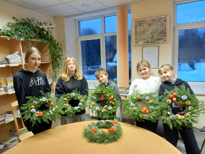 Dubičių bibliotekoje vaikai mokėsi pinti ir dekoruoti kalėdinius vainikus, iš siūlų ir kankorėžių pasigaminti nykštukus – žaislus Kalėdų eglutei. Visai neblogai pavyko! Visi nykštukai-girinukai sutūpė ant kalėdinės eglutės. Bibliotekininkė Regina Lukoševičienė dalyviams pasakojo apie žiemos tradicijas ir papročius, susikaupimo prasmę. Vaikai, žinoma, labiausiai domėjosi burtais, sakė būtinai išbandys Kūčių vakarą. Kalbėta, kaip nudžiuginti tėvelius, kokias dovanas jiems paruošti.